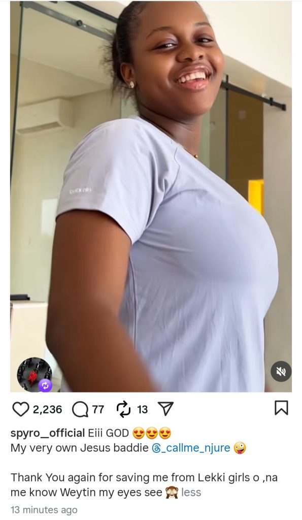 “Eii GoD. My very own Jesus baddie. Thank You again for saving me from Lekki girls o, na me know weytin my eyes see.”
